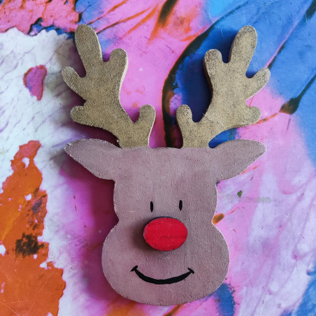 Ce renne en bois peint à la mains fera une magnifique décoration pour vos festivités de Noël.